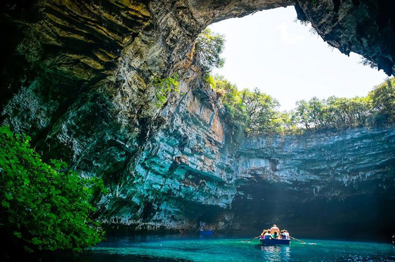 The cave of Melissani, outside Sami, is one of the most significant sights on the island. The cave is 40 meters in width, 36 meters in height, and 3.5 meters in length. Inside, it is covered by water 20 to 30 meters in depth due to the collapse of a part of the roof.